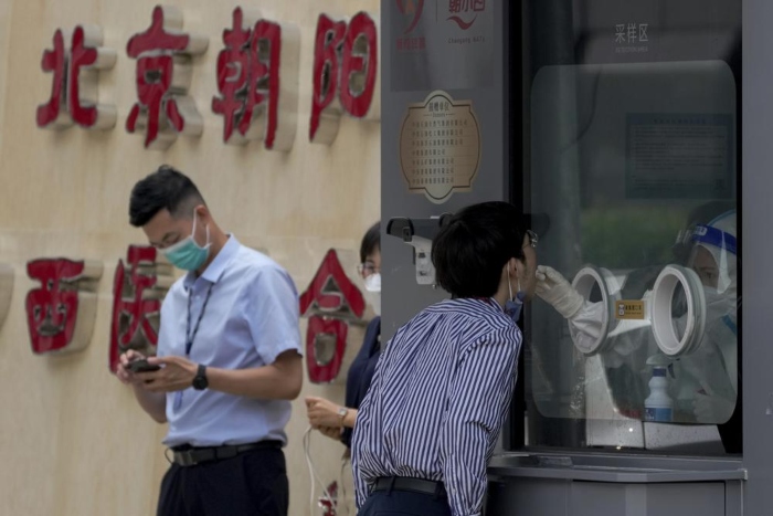 Una persona se realiza un test en un centro de pruebas de COVID-19 en Beijing, el lunes 13 de junio de 2022. Foto: Andy Wong, AP.