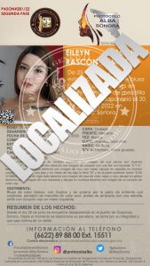 Sonora, 25 de junio (Vanguardia).- La Fiscalía General de Justicia del Estado de Sonora (FGJE) confirmó este viernes el fallecimiento de Amairani Rascón Ramos, de 25 años, joven reportada como desaparecida desde el 20 de junio.