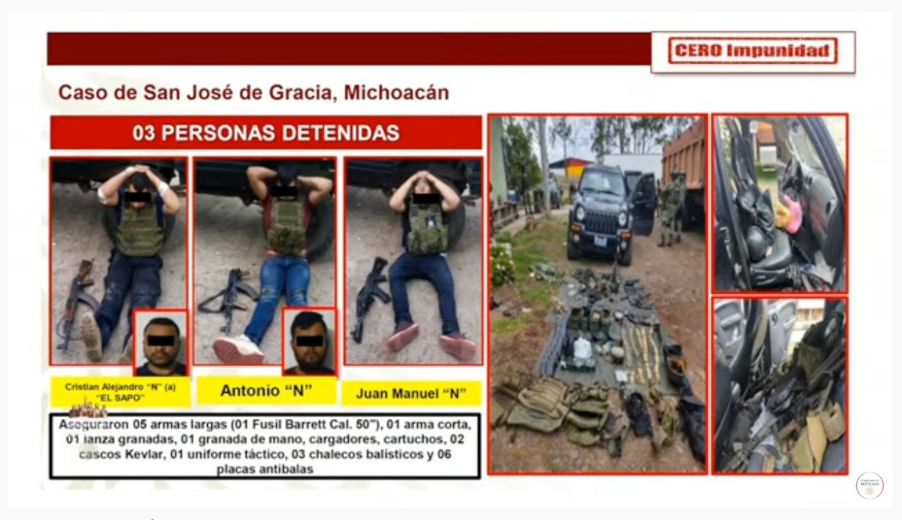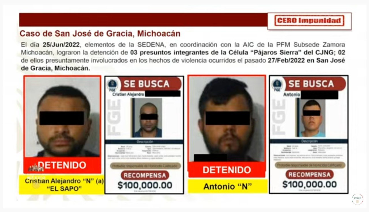 "Dos de estos sujetos presumiblemente estuvieron involucrados en los hechos de violencia ocurridos el 27 de febrero pasado en San José de Gracia, Michoacán”, dijo.