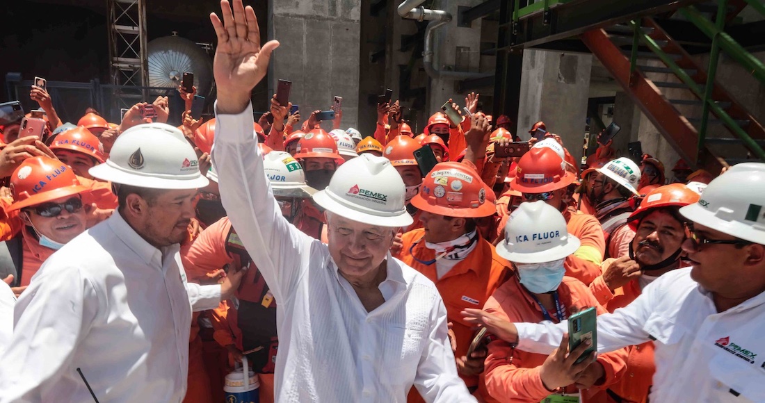 Al cumplirse cuatro cuatro años de su victoria electoral en 2018, López Obrador cortó sonriente el listón rojo para inaugurar la primera etapa de pruebas de la refinería “Olmeca”, en Dos Bocas, Tabasco, acompañado de su esposa Beatriz Gutiérrez, la Secretaria de Energía, Rocío Nahle, y el director de Petróleos Mexicanos (Pemex), Octavio Oropeza, entre otros miembros del gabinete federal.