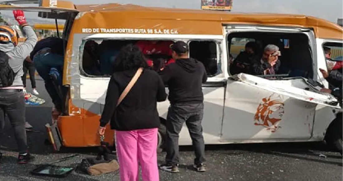 La muerte de una niña y nueve pasajeros lesionados fue el saldo de un accidente entre la unidad de transporte público, que viajaba a alta velocidad y lleno de pasajeros, y un Chevrolet Chevy.