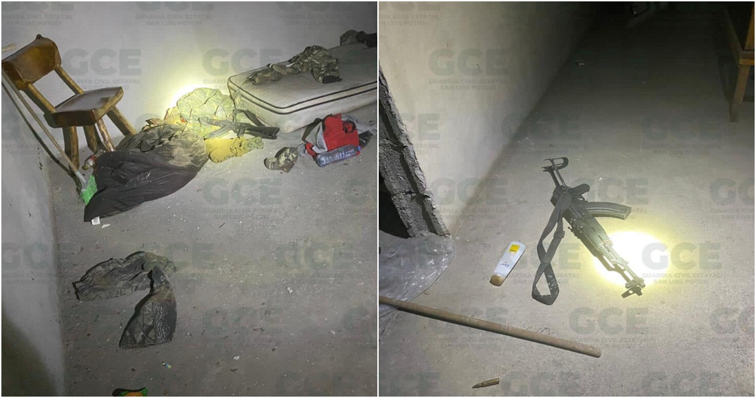 Luego del enfrentamiento y ya durante el conteo de indicios, en el interior del inmueble se localizaron cinco armas largas calibre 7.62 × 39 y 22 armas largas, al parecer calibre .308.