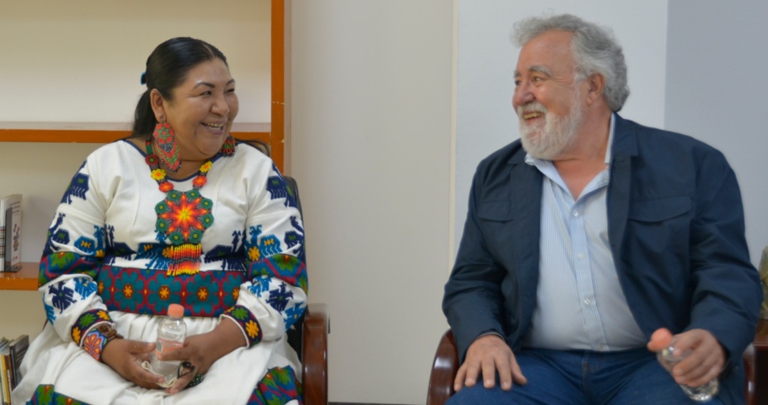 La titular del Conapred, Claudia Morales Reza, junto con el del INPI, Adelfo Regino Montes. Foto: INPI
