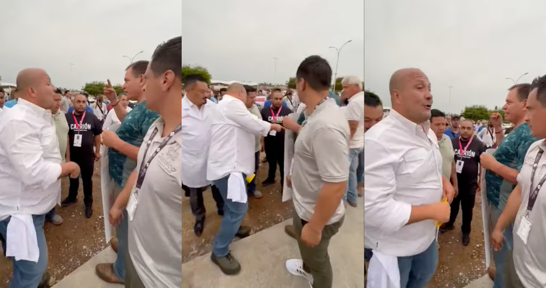 Acto seguido, los demandantes comienzan a mostrarle al Gobernador una serie de documentos mientras intentan explicarle la situación de los retrasos en la obra. Ante esta situación, Alfaro empieza a caminar y exclama “a eso venimos, relájense”. “No, no viene a eso”, responde Luis León. “¿A qué vengo?”, pregunta Alfaro molesto mientras se detiene. “Pues no sé a qué vienen, está hablando la Rectora, por respeto a la Rectora queremos que la escuchen”, responde el Secretario. Enseguida, el Gobernador continúa su camino y exclama: “Yo vengo en plan tranquilo, vengo a grabar un video, a decir la información. Cuida lo que haces”.