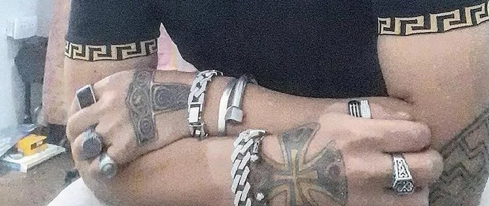 En las fotos que compartía en sus redes sociales se puede apreciar que tiene en el codo izquierdo un sol negro alemán, un símbolo que los nazis utilizaban como un amuleto de la fuerza de la raza aria. Foto: Redes Sociales