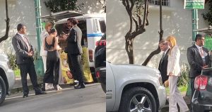 En redes sociales comenzó a circular un video y algunas imágenes en las que se aprecia a la actriz, acompañada de una amiga y dos elementos de seguridad, mientras está comprando queso en un negocio ambulante.
