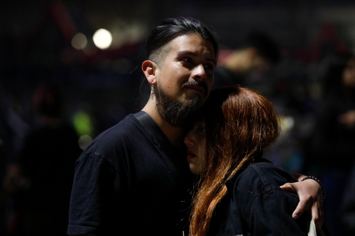 Los partidarios de la nueva Constitución se abrazan mientras escuchan los resultados parciales de un plebiscito que daban la ventaja a la opción del "Rechazo" a la propuesta del nuevo texto constitucional. Foto: Matías Basualdo, AP.