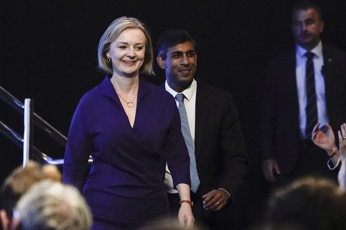 En la primera fase del concurso para sustituir a Johnson participaron ocho candidatos. Tras cinco rondas de votaciones entre los diputados conservadores, Sunak, excanciller, quedó en primer lugar con 137 votos (38.3 por ciento), Truss, entonces ministra de Asuntos Exteriores, quedó en segundo lugar con 113 votos (31.6 por ciento), y Penny Mordaunt, ministra de Estado para la Política Comercial, fue eliminada de la carrera con 105 votos (29.3 por ciento).