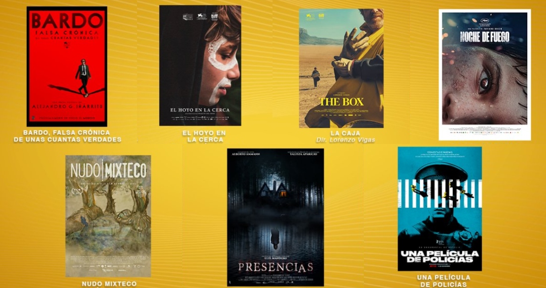 Los títulos seleccionados son: Bardo, de Alejandro González Iñárritu; El Hoyo en la cerca de Joaquin del Paso; Nudo mixteco, ópera prima de Ángeles Cruz; La caja, de Lorenzo Vigas; Noche de fuego de Tatiana Huezo; Una película de policías de Alonso Ruizpalacios; y Presencias, la cinta de Luis Mandoki donde participa Yalitza Aparicio.