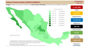 De acuerdo con el Informe Técnico Diario proporcionado por la dependencia federal, el país acumula, desde el inicio de la pandemia en marzo de 2020, siete millones 049 mil 955 casos confirmados y 329 mil 652 muertes a causa del virus.