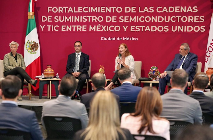 En la conferencia por el diálogo económico, la Secretaria Tatiana Clouthier destacó que llevan un año en colaboración con Estados Unidos, destino del 78 por ciento de la exportación automotriz mexicana, para la cofabricación de estos insumos electrónicos, clave para la industria automotriz que genera cinco millones de empleos directos e indirectos. El área de autopartes tiene más de 875 mil puestos directos registrados este 2022.
