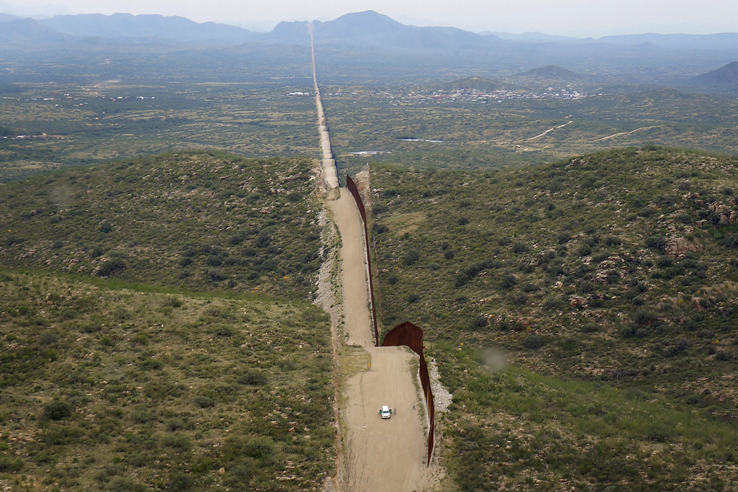 Un muro que separa a México y EU se interrumpe abruptamente en un sector remoto de la frontera (centro, parte inferior de la foto). Foto: Giovanna Dell'Orto, AP.