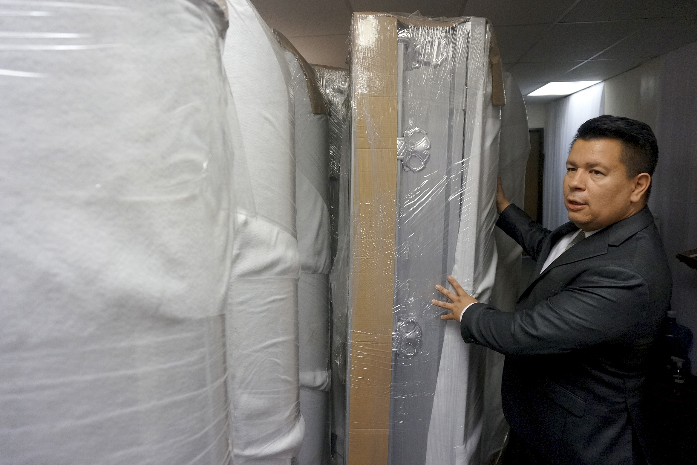 Azhar Dabdoub, director de una funeraria de Tucson (Arizona), recibe nuevos ataúdes para migrantes muertos en el desierto al tratar de cruzar ilegalmente de México a EU. Foto: Giovanna Dell'Orto, AP.