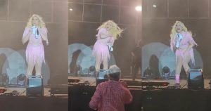 Al final la cantante también bromeó con el hecho y terminó de dar un excelente espectáculo musical a todas las personas que habían ido a verla a los festejos patrios en aquél municipio.