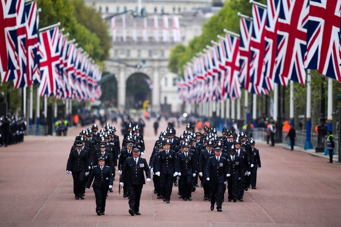 En un país conocido por la pompa y el boato, el primer funeral de estado británico desde el de Winston Churchill fue un despliegue espectacular: 142 marineros de la Armada tiraron del carro de armas con el ataúd de Isabel hasta la Abadía de Westminster, mientras el rey, Carlos II, y sus hijos, los príncipes Guillermo y Enrique, caminaban detrás y sonaban las gaitas.
