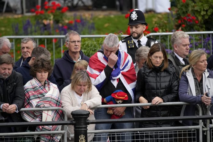 A una mujer con un sombrero floral en Hyde Park le corrían lágrimas por el rostro, otra llevaba una pequeña taza de té con un emblema real y un hombre con la bandera británica sostenía un Oso Paddington. Los asistentes hicieron reverencias al escuchar la misa en la Abadía de Westminster.