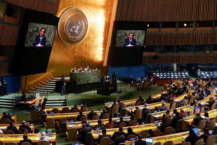 "Vengo de un país de belleza ensangrentada", ha comenzado Petro su intenso y vehemente discurso, el primero como Presidente de Colombia ante la Asamblea General de Naciones Unidas, desde donde ha afeado el "hipócrita" discurso de salvar la selva, ya que es vista como "el enemigo a derrotar".