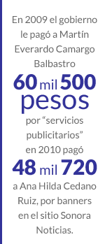 Las televisoras y radiodifusoras locales Televisora del Yaqui, Tv Corporativo del Valle del Yaqui, Televisora de Mexicali, Tv Corporativo de Sonora, Grupo Radiofónico de Hermosillo, Grupo Acir y XEPB de Hermosillo recibieron menos de medio millón de pesos por publicidad gubernamental.
