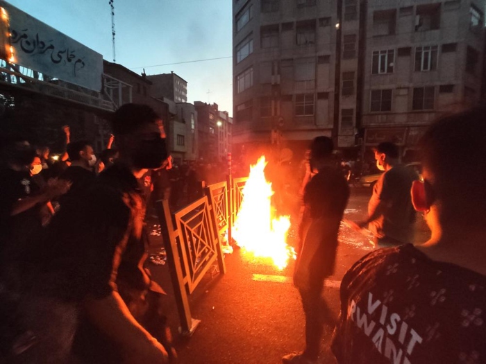 Los videos en redes sociales muestran a los manifestantes en Teherán incendiando una patrulla policial y enfrentando a los agentes cuerpo a cuerpo. En otras partes de la capital, hubo disparos y una persona corría gritando "¡Están disparándole a la gente! ¡Dios mío, están matando gente!".