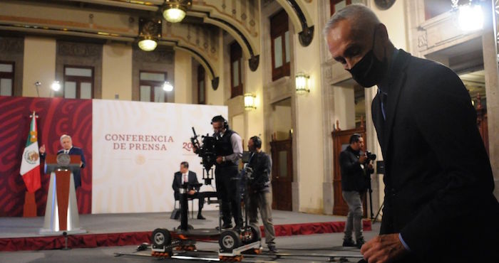 El periodista le hace saber al presidente que su gobierno es el más violento en la historia moderna de México, ya que el número de asesinados supera al que se registró en el sexenio de Calderón y está a punto de rebasar al de Enrique Peña Nieto. Foto: Daniel Augusto, Cuartoscuro.