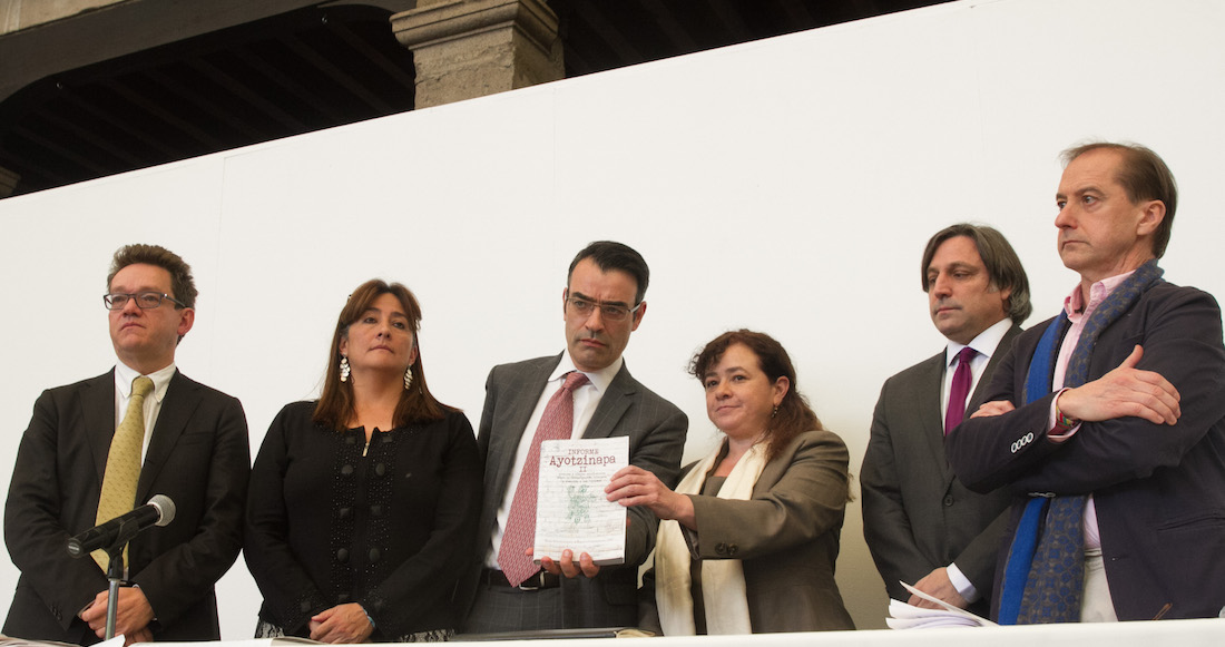Aunque pidieron a los integrantes del Grupo Internacional de Expertos Independientes (GIEI) que se subieran a su lado, el grupo no aceptó porque no sabía qué iba a anunciarse.