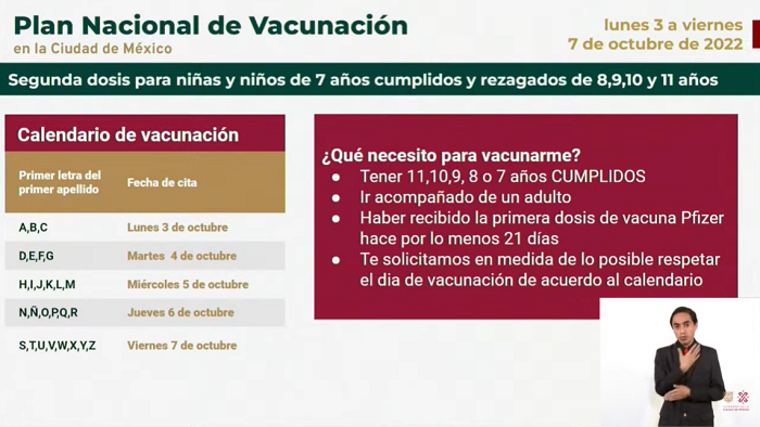 El funcionario también indicó que la próxima semana cualquier niño de cinco a 11 años de edad que requiera la primera dosis podrá acudir a recibir la vacuna en cualquiera de las unidades de acuerdo al día que se tiene asignado en el calendario según el apellido paterno.