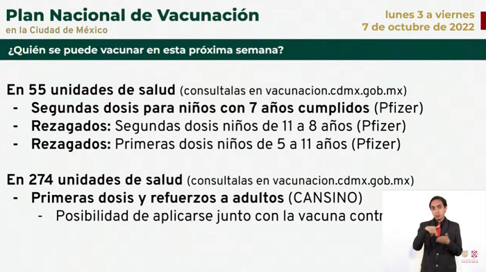 "Ya es tiempo de ponernos al corriente contra la COVID-19 para estar todos protegidos cuando llegue la temporada invernal", expuso.