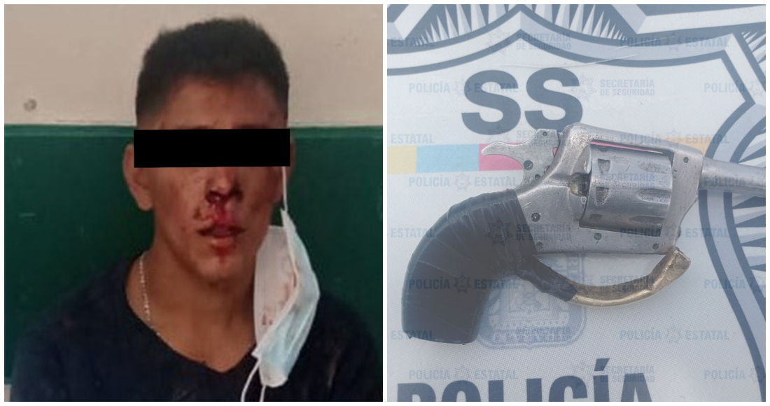 Enseguida, el criminal lo sigue e incluso realiza una revisión a los bolsillos del joven que es obligado a sentarse en la guarnición de la banqueta.