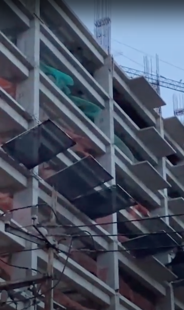Rodrigo, que vive frente a esta obra, también ha sido víctima de las prácticas de esta constructora. Contó que una vez que hacía mucho viento voló una tabla y se estrelló en su vivienda, dañando paredes y un auto que estaba dentro del garage.