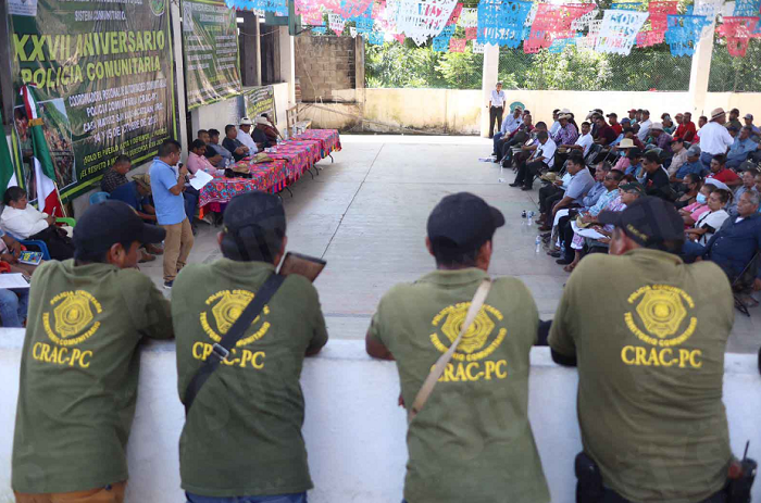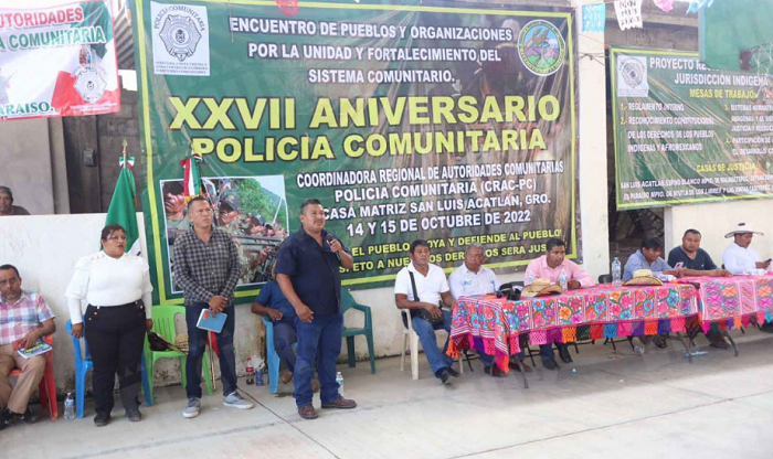 En su intervención, el abogado del Centro de Derechos Humanos de la Montaña Tlachinollan y asesor de la CRAC-PC, Vidulfo Rosales Sierra, dijo que a lo largo de los 27 años, la CRAC rescató el sistema normativo propio de los pueblos indígenas para resolver el problema de inseguridad y violencia que el Estado mexicano, a través de sus instituciones, no pudo y fue omiso.