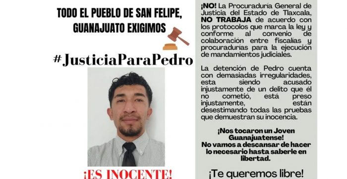 Ciudad de México, 14 de octubre (SinEmbargo).- El único delito de Pedro Francisco Rodríguez Vázquez, un joven de 24 años originario del municipio de San Felipe, Guanajuato, ha sido llamarse exactamente igual que otra persona con una investigación y una orden de aprehensión por homicidio calificado, ha denunciado su familia.