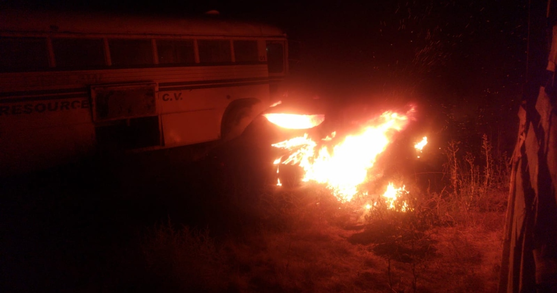 En redes sociales circulan videos en los que se puede observar la camioneta en llamas, misma que ya se encontraba acordonada para evitar un accidente mayor en la zona.