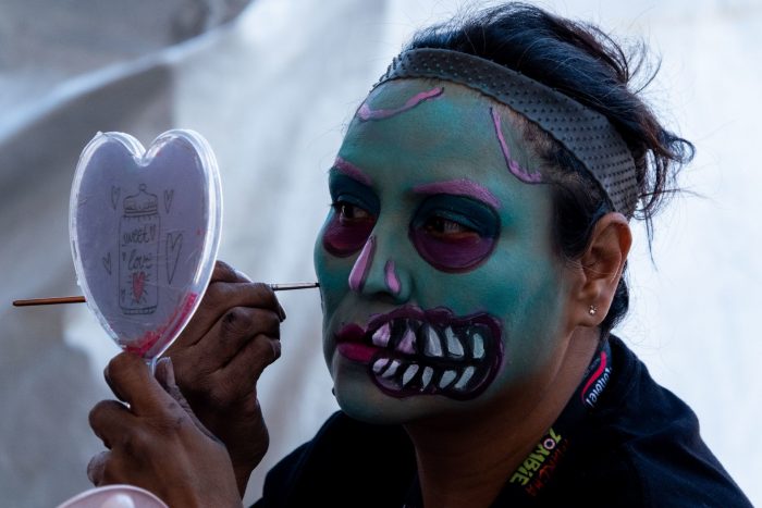 Desde las 10:00 horas comenzaron a llegar a la zona centro de la capital del país para terminar los detalles de sus vestuarios, buscar donde maquillarse, encontrarse con otros muertos vivientes o simplemente dar un recorrido para apreciar otros disfraces.