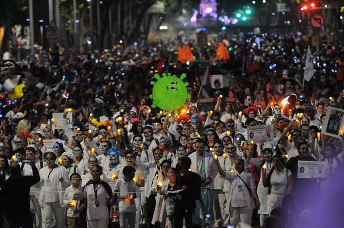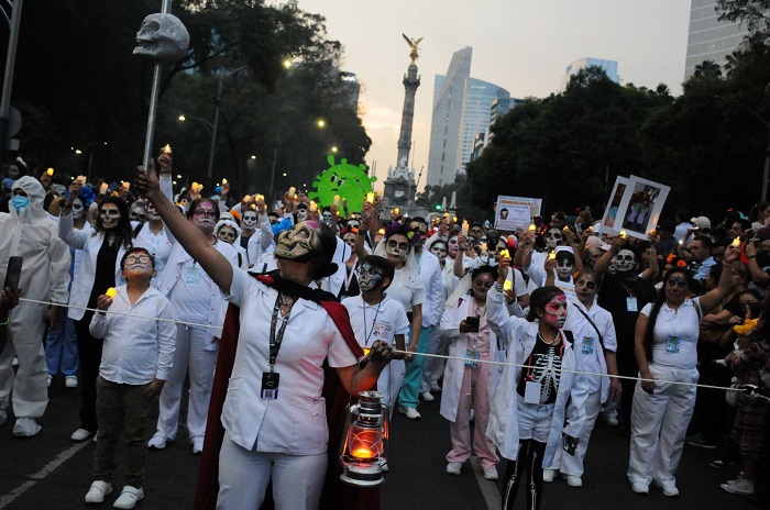 Como homenaje especial al personal de salud fallecido durante la pandemia, un contingente de personal médico lideró la marcha.
