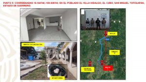 El Subsecretario de la Secretaría Seguridad y Protección Ciudadana (SSPC), Ricardo Mejía Berdeja, informó durante la conferencia matutina de este jueves que elementos de la Secretaría de la Defensa Nacional (Sedena), Guardia Nacional (GN), en coordinación con la SSPC, el Centro Nacional de Inteligencia (CNI), Coordinación Nacional Antisecuestro (Conase) y la Fiscalía Especializada en Materia de Delincuencia Organizada (FEMDO) de la Fiscalía General de la República (FGR) practicaron cinco órdenes de cateo en cinco domicilios ubicados en diversos municipios del estado de Guerrero, los cuales están presuntamente vinculados a Johnny Hurtado, alias "El Pez", y José Alfredo Hurtado Olascoaga "El Fresa".