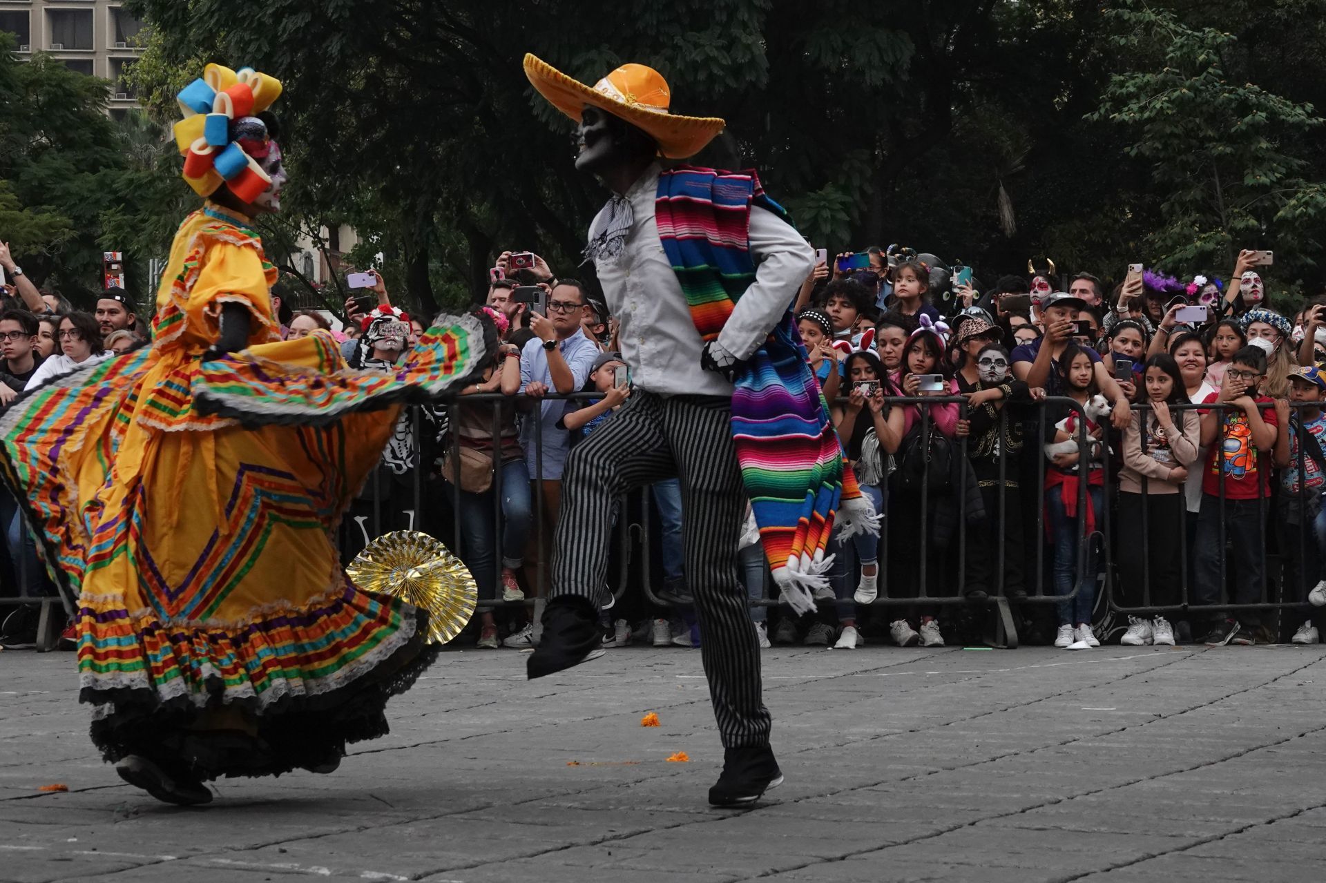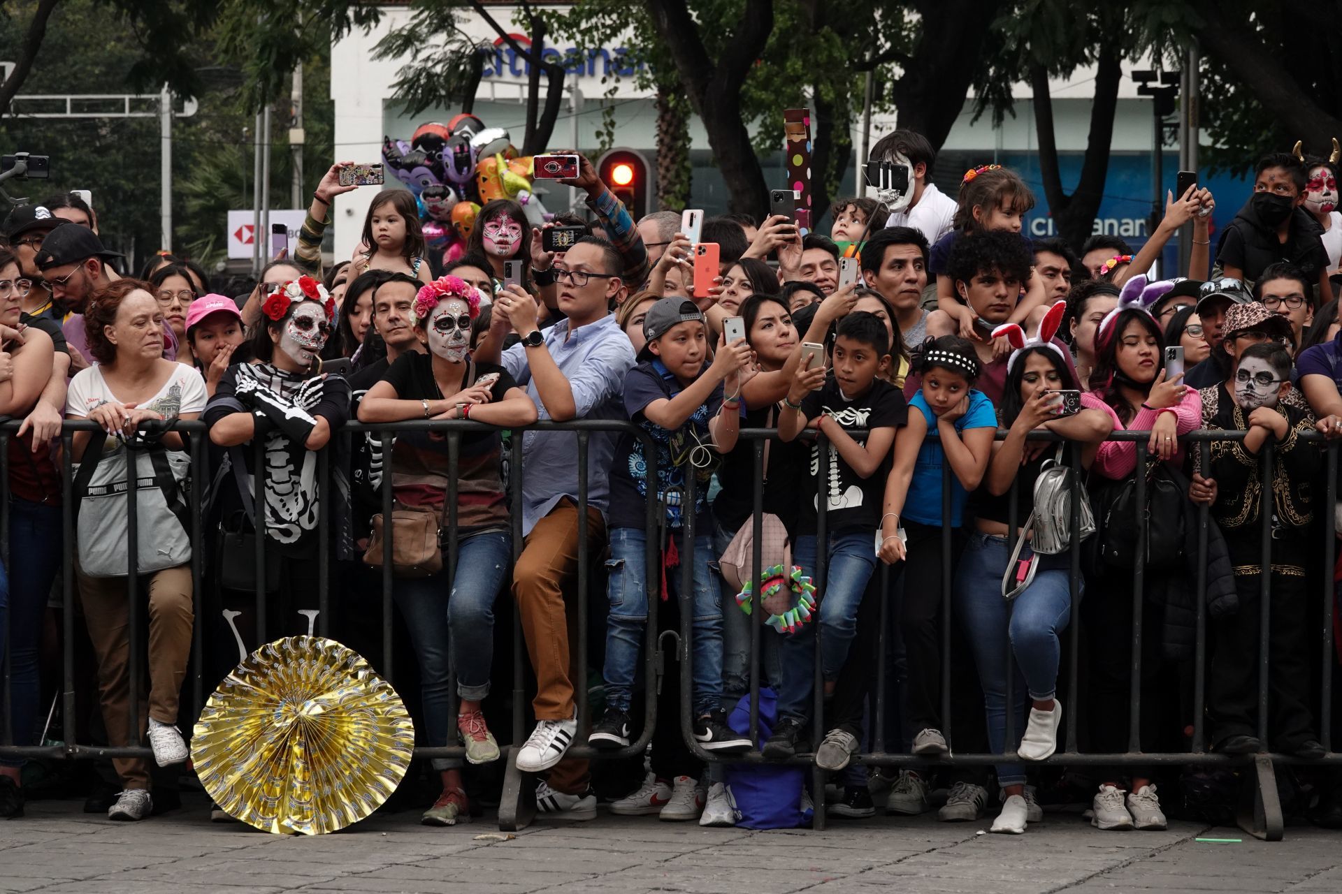 Calaveritas, catrinas, disfraces, flores y colores fluyeron por miles por el Paseo de la Reforma y abarrotaron las calles rumbo al Zócalo, donde hubo lleno para que esta noche la cantante de música regional mexicana, Ángela Aguilar, cerrara el evento con un concierto.