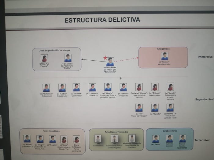 Los Jefes de la producción de drogas son “La Patrona” y Jorge García alias “Caín” y/o “El Diablo”, quienes tienen vínculos en la Ciudad de México con “El Zorro” o "Tío" del grupo criminal “La Unión de Tepito”.