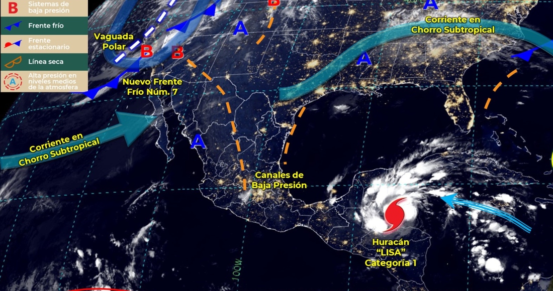 CIUDAD DE MÉXICO (AP).— El ciclón tropical "Lisa" se dirige hacia el sur de México el jueves, un día después de tocar tierra como huracán cerca de Ciudad Belice y cruzar tierra adentro sobre el norte de Guatemala.