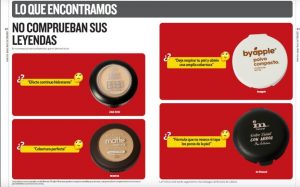Las marcas de maquillaje y las frases que no se pudieron comprobar son: