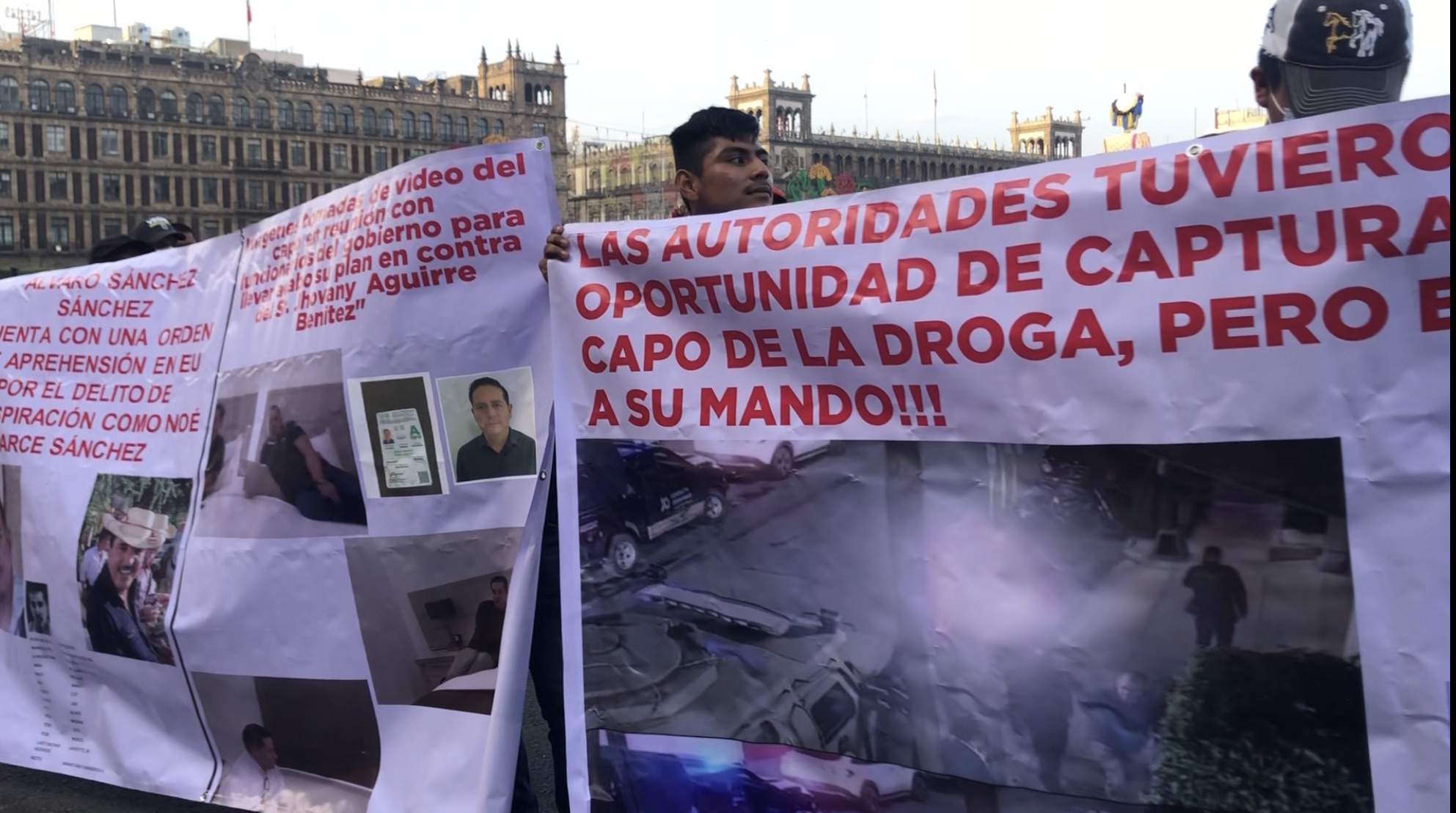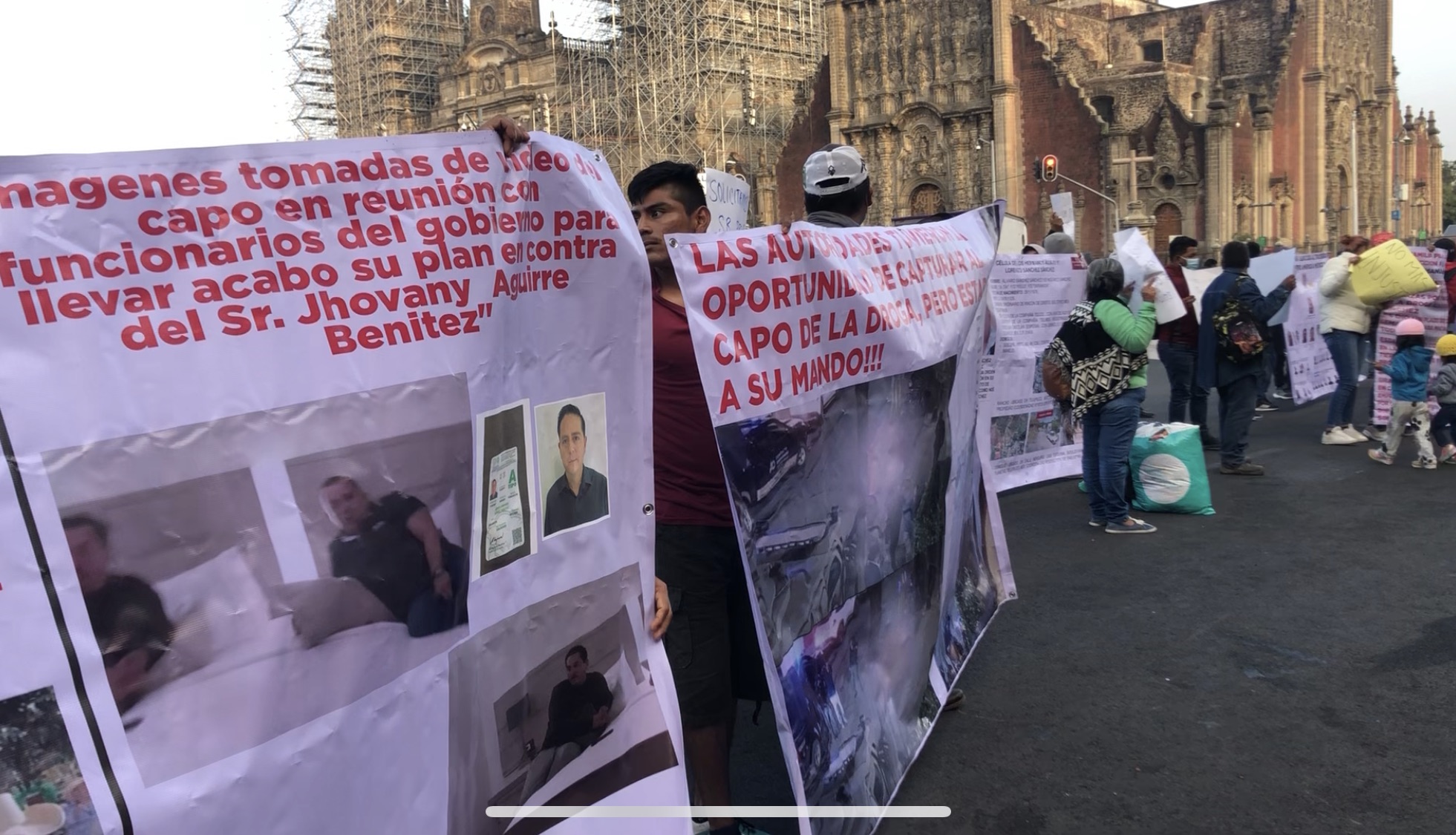 DENUNCIA DE HECHOS JHOVANY AGUIRRE BENITEZ. (2)Los familiares de Aguirre Sánchez también enfrentan acusaciones por delitos fabricados. Es el caso de su esposa y su hermano; el jueves 3 trabajadores y empleados de Aguirre viajaron a la ciudad de México para protestar por su detención ilegal y pedir que se difiera la audiencia hasta que se revise su expediente. La protesta la realizaron en el zócalo, frente a Palacio Nacional. En sus consignas exigieron la liberación de su patrón y la revisión de las indagaciones, las cuales –aseguran –están plagadas de anomalías e inconsistencias.