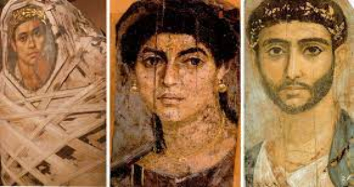 Roma, el imperio, siempre al acecho. La codicia de hombres cuya cultura era la guerra, capaces de invadir y subordinar a otras civilizaciones denostándolas como bárbaras. Roma y su eterna comunión con los augurios de un destino fatal, conquista al Egipto griego y lo reduce a provincia de su imperio. No obstante, crea uno de los momentos de mayor luz en la historia. Multiplicidad de pensamientos, conserva la tradición egipcia que ya se había fusionado con Grecia. A la preservación de los cuerpos por vía de la momificación se suma el culto a la persona. Para los romanos su imagen representada es la constatación de logro en vida. Los retratos romanos que hoy abundan en los museos son la prueba fehaciente de su existencia. Al morir, en las colonias romanas egipcias, se practicaba la momificación con el elemento añadido del retrato, con la intención de ser identificados en su mejor momento, en el esplendor de su vida. Peinados, joyas, vestimentas, maquillajes, dotan de individualidad al retrato. Icono de una época.