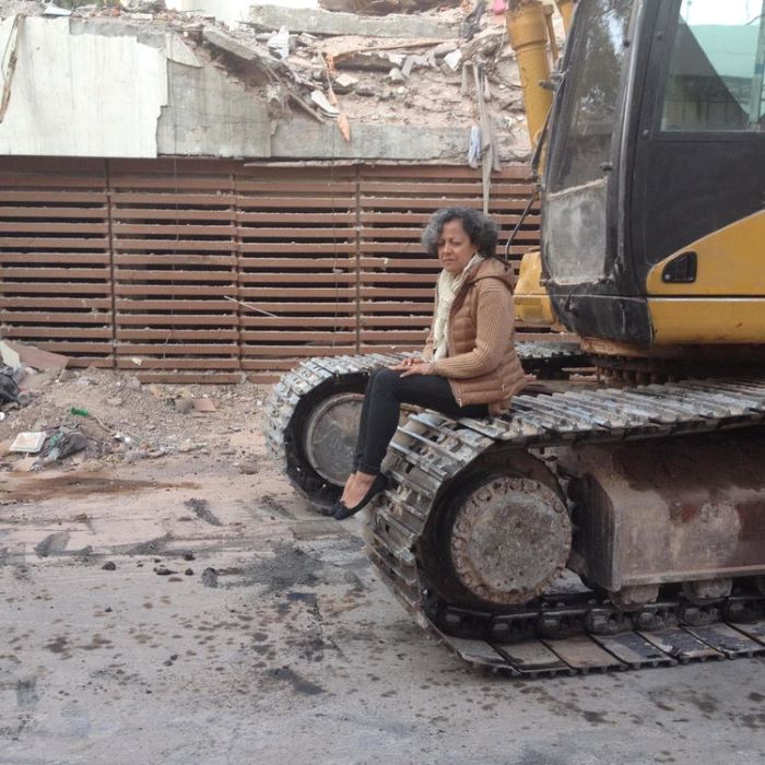 Araceli aceptó. Cuando le abrieron la puerta, ella se percató que la máquina seguía encendida. Islas Labastida la recibió, le estrechó la mano y caminó a su lado unos metros al interior de la zona siniestrada. Araceli le dijo: