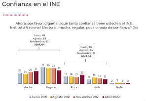 “A partir de este análisis es posible concluir que las variables más asociadas a confiar en el INE son identificarse con el PAN y el PRI” y también coinciden con desaprobar la gestión del Presidente López Obrador.
