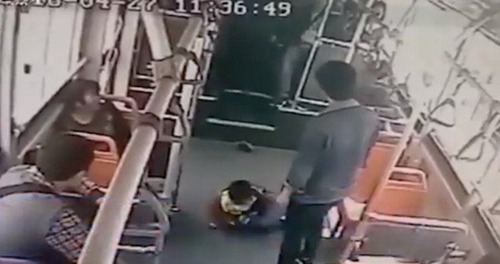 En las imágenes que ya circulan en redes sociales se ve cómo el hombre patea a la menor, quien cae al suelo.