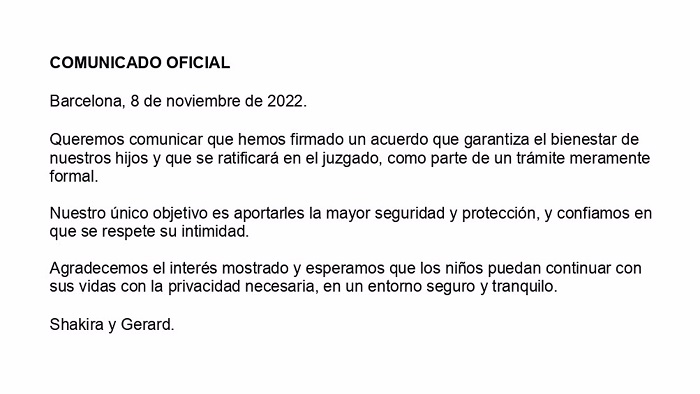 Tal y como asegura el periodista Andrés Guerra, Gerard ha decidido dar su brazo a torcer y sacrificarse por sus hijos, ya que la alternativa era ir a juicio y el fubolista no estaba dispuesto a que sus hijos viviesen una experiencia traumática. Un sacrificio muy doloroso con el que cobra más sentido que nunca la frase con la que el defensa se rompió por completo en su último partido en el Camp Nou: "A veces amar significa dejar ir".