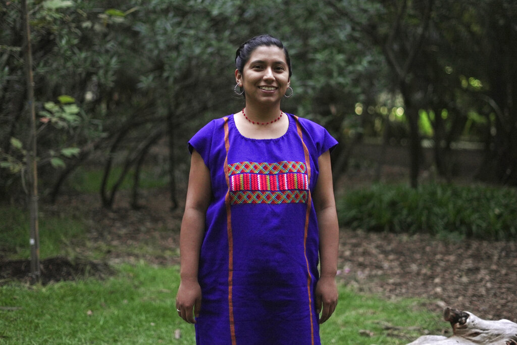 La activista climática Mitzy Violeta posa para una foto en Ciudad de México, el 19 de octubre de 2022. Foto: Teresa de Miguel, AP.