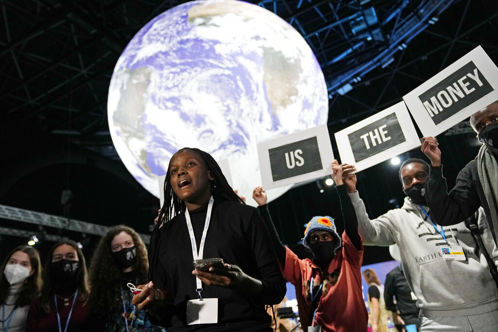 La activista climática Vanessa Nakate participa en una protesta de "Muéstrennos el dinero" en la cumbre climática COP26 en Glasgow, Escocia, el 8 de noviembre de 2021. Foto: Alastair Grant, AP.