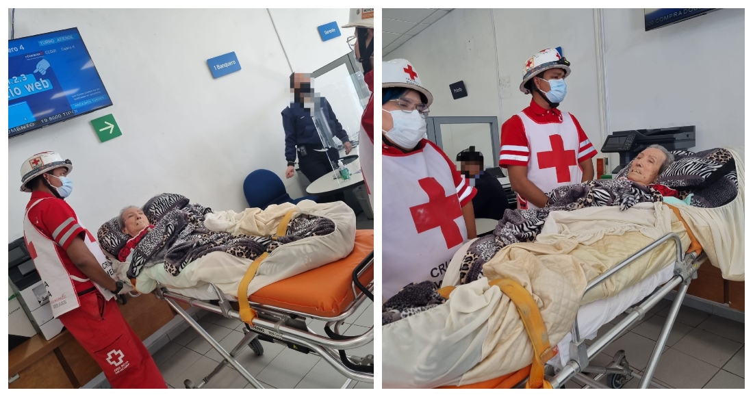 Gómez Reyna está postrada en una camilla, por fractura de cadera y padece diabetes, en la que llegó a bordo de una ambulancia de la Cruz Roja.