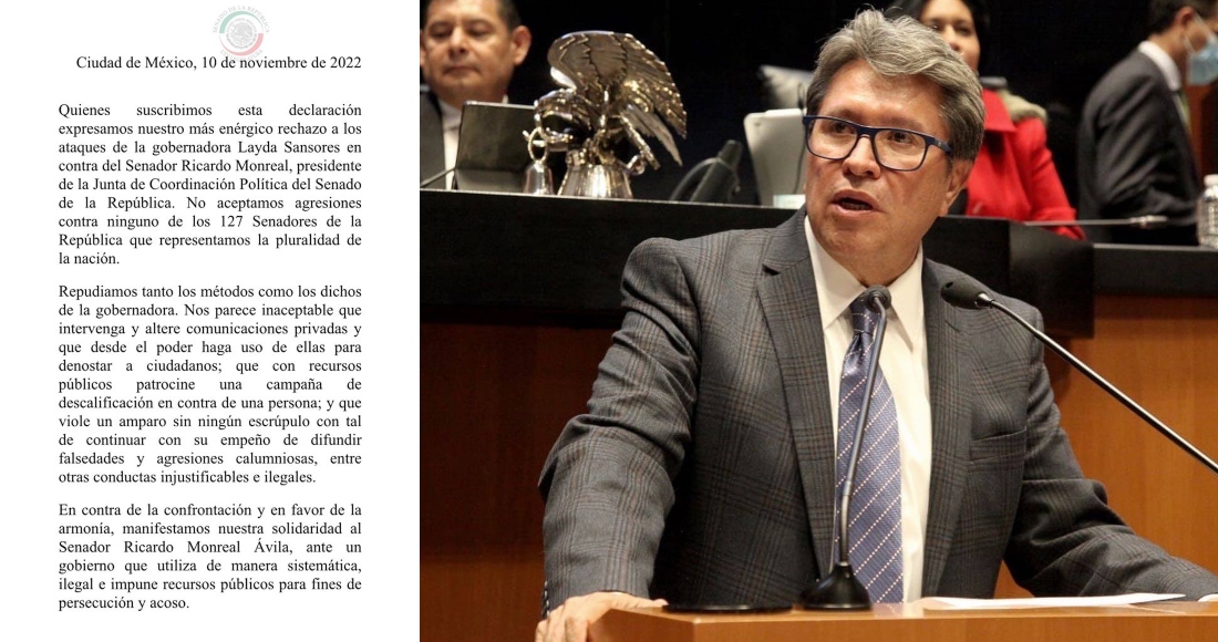 El pasado jueves, 87 senadores firmaron un posicionamiento de respaldo al Senador Ricardo Monreal Ávila ante los recientes ataques de Layda Sansores.