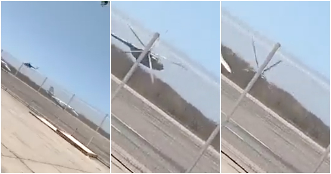 En los videos publicados en redes sociales se puede observar el momento exacto en que el helicóptero se sale de control y empieza a girar hasta caer contundentemente.